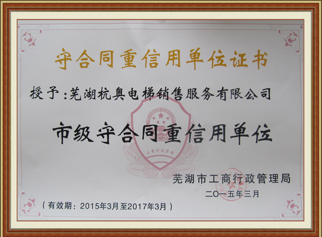 守合同重信用單位證書
